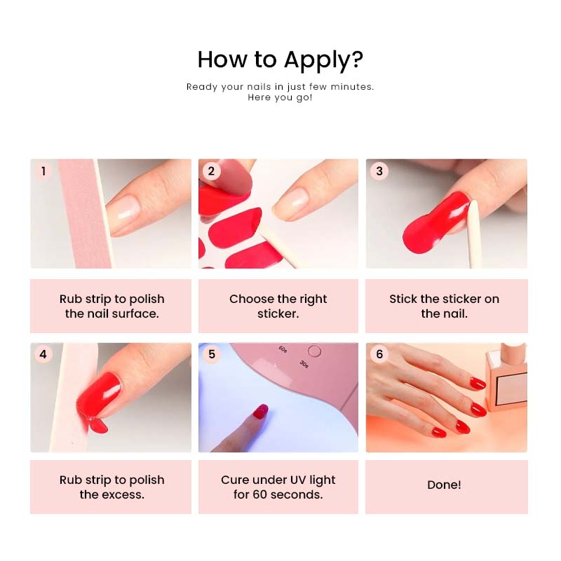 NOTE: Some color changes in actual nail wraps can happen because of different lighting conditions during photography and also because of different monitor settings of users.